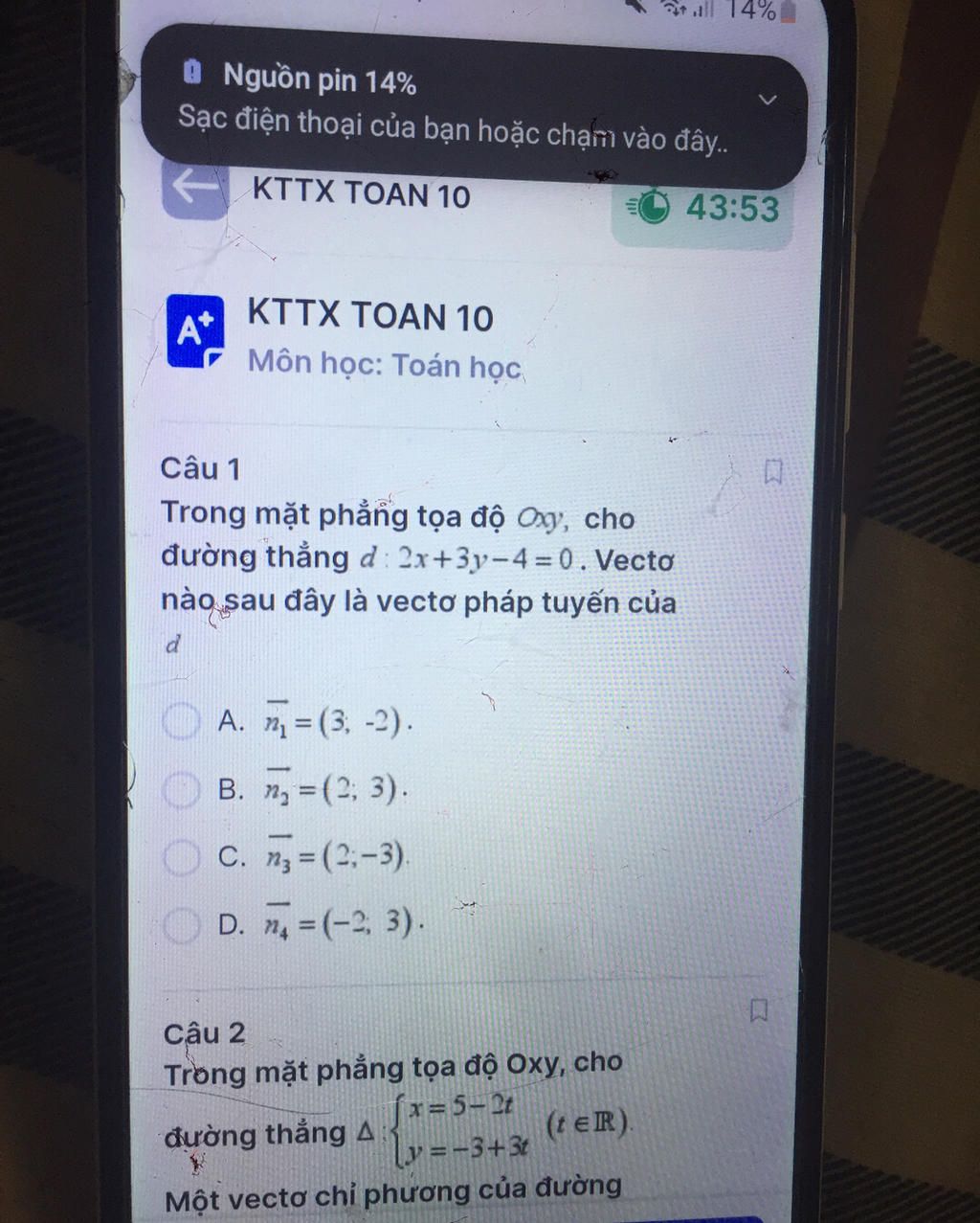`-> vecn=(2;3)` là VTPT