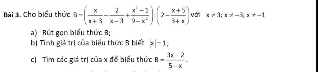 b) Tính giá trị của biểu thức B biết |x|=1;