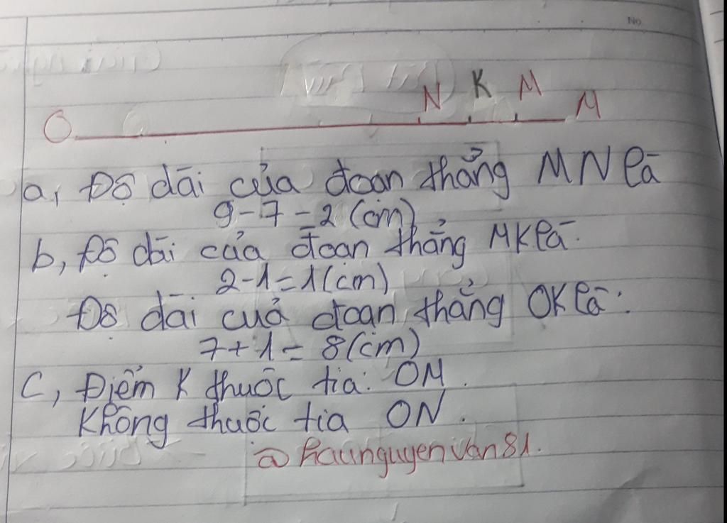 b, Gọi k là trung điểm của đoạn thẳng MN . Tính độ dài các đoạn thẳng MK, OK