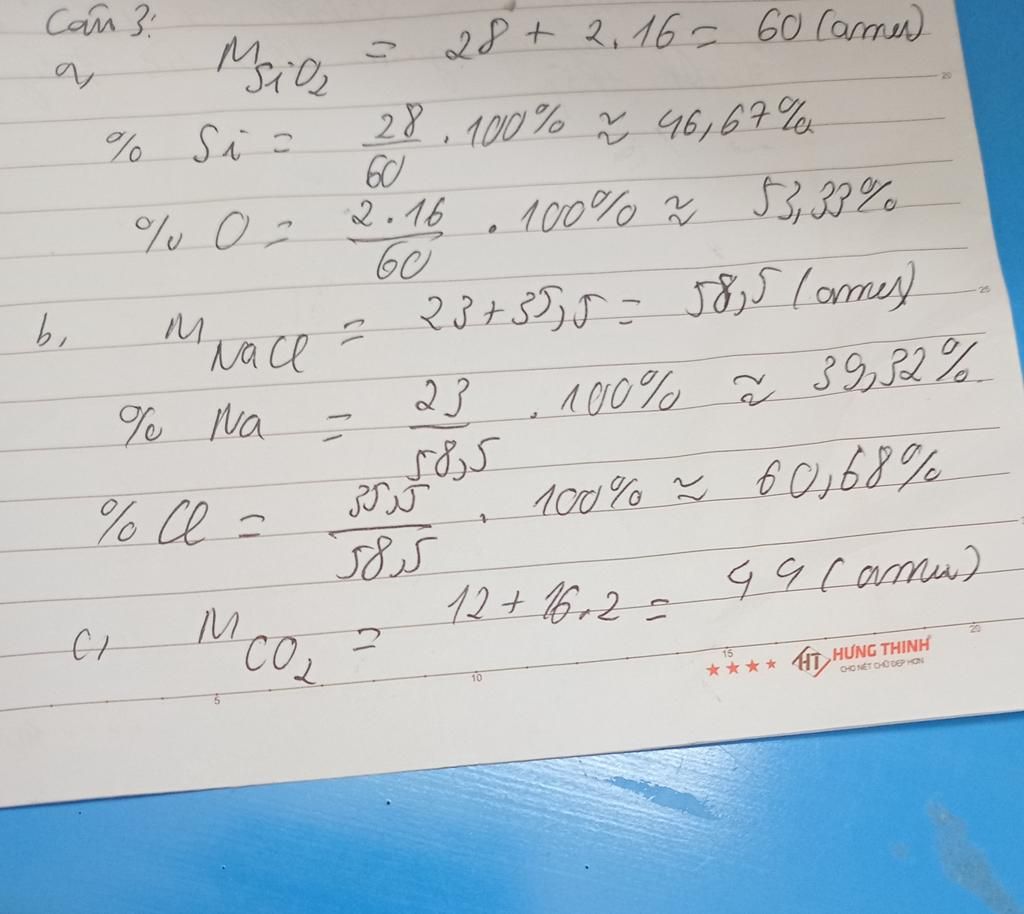 Câu 3: Xác định thành phần % của các nguyên tố trong hợp chất sau: