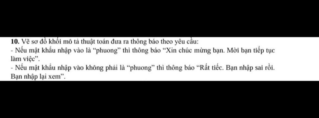 10. Vẽ sơ đồ khối mô tả thuật toán đưa ra thông báo theo yêu cầu:
