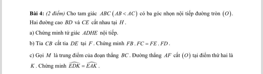 Xét $\triangle FKB$ và $\triangle FCA$ có $\widehat{AFC}$ chung và $\widehat{ACB}=\widehat{FKB}$