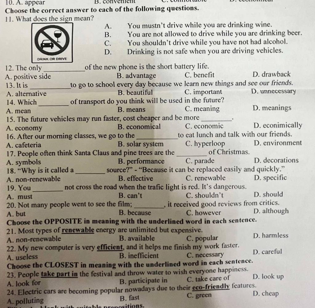 ⇒ C: Không nên lái xe khi không có cồn `->` Sai `->` Loại