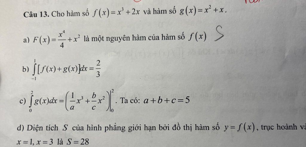 Với `C=0 -> F(x)=[x^4]/4+x^2 ->F(x)` là `1` nguyên hàm của `f(x)`