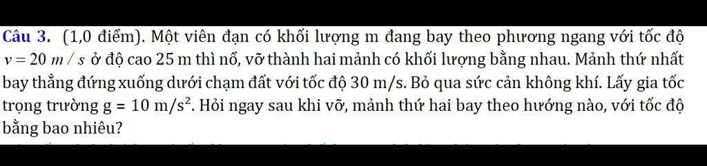 Vận tốc của mảnh thứ nhất sau khi nổ là `:`