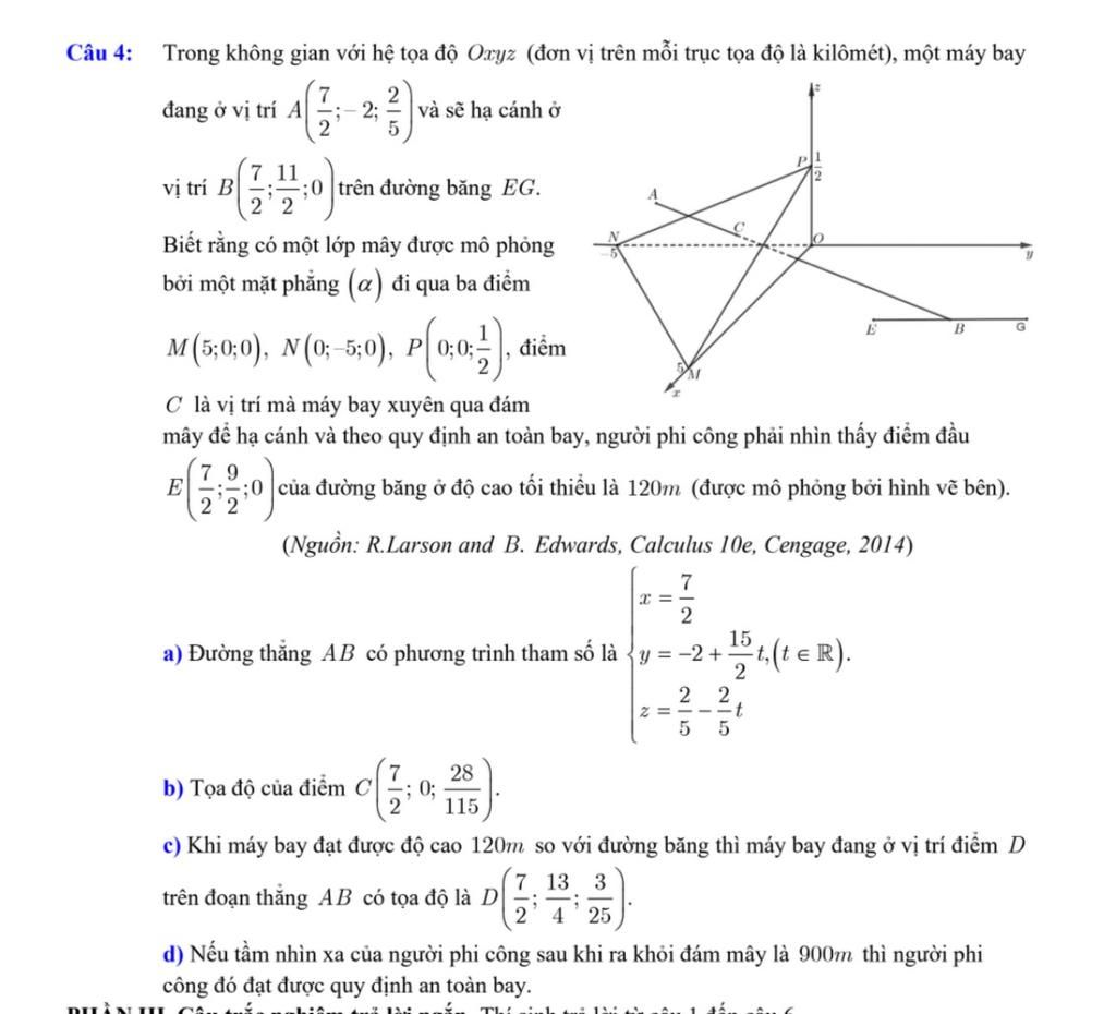 Trong không gian với hệ tọa độ Oxyz (đơn vị trên mỗi trục tọa độ là kilômét), một máy bay