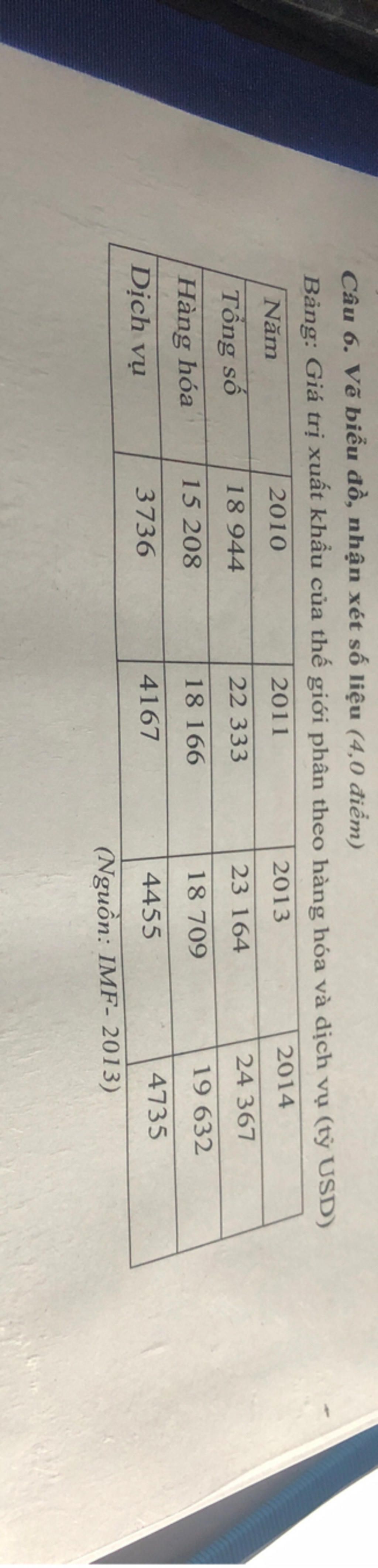 Câu 6. Vẽ biểu đồ, nhận xét số liệu (4,0 điểm)