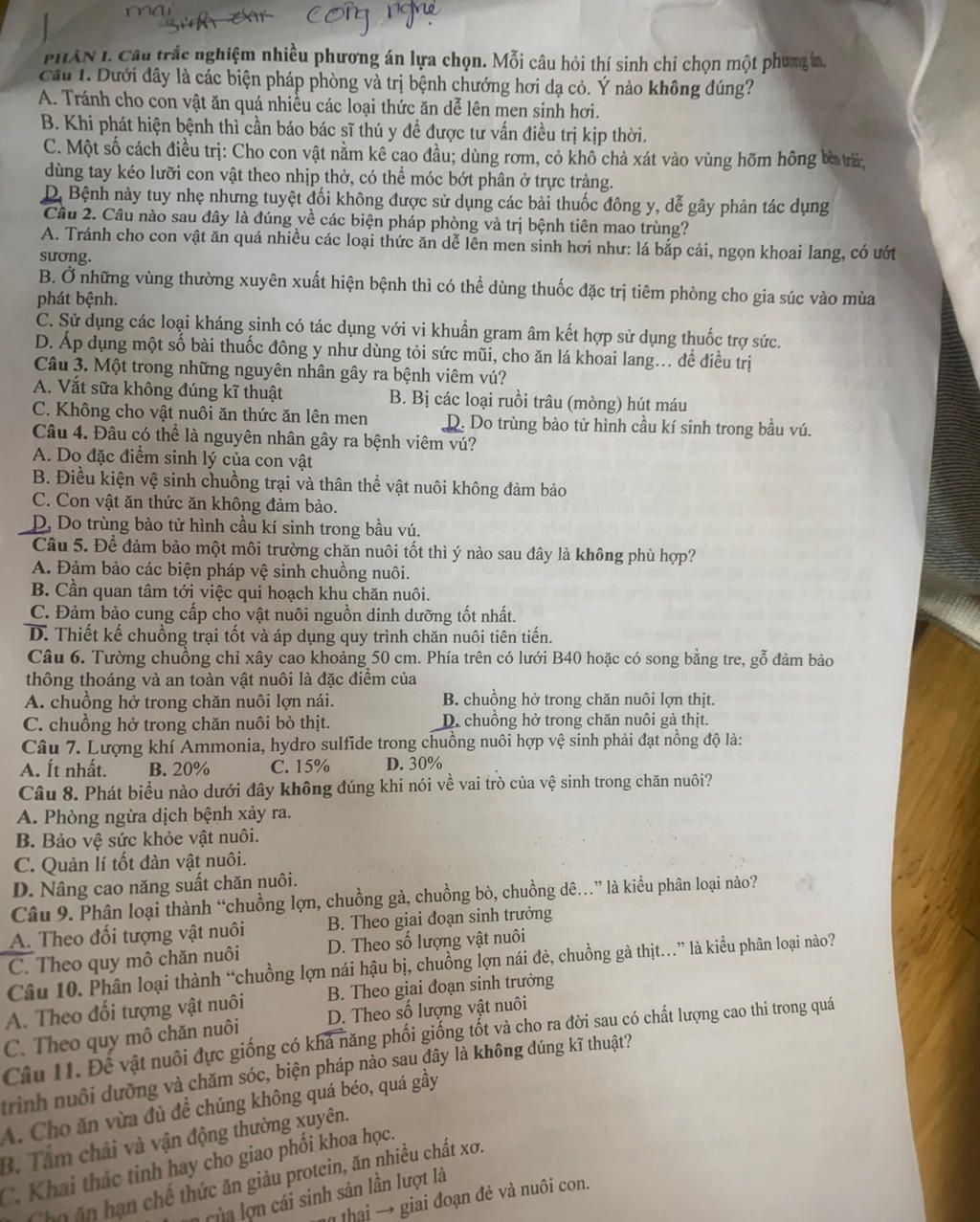 Câu I. Dưới đây là các biện pháp phòng và trị bệnh chướng hơi dạ cỏ. Ý nào không đúng?