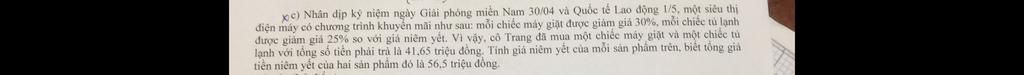Gọi `x` là giá niêm yết của máy giặt (triệu đồng)
