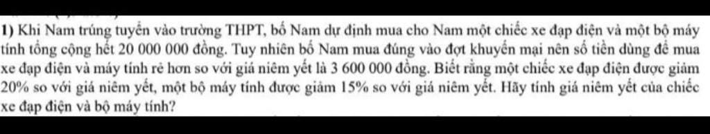 Vì bố Nam dự định mua xe đạp điện và bộ máy tính hết `20000000` đồng nên :