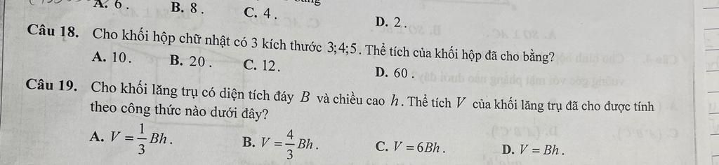 `V = a . b . c = 3 . 4 . 5 = 60 (cm^3)`