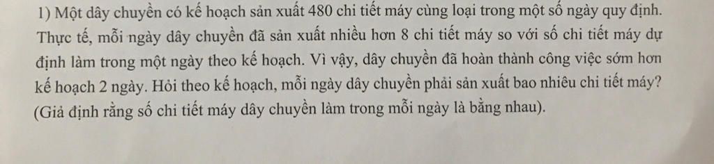 Gọi số chi tiết máy dây chuyền phải sản xuất theo kế hoạch là: `x` `(`chi tiết máy`),` `x > 0, x ∈ N`*
