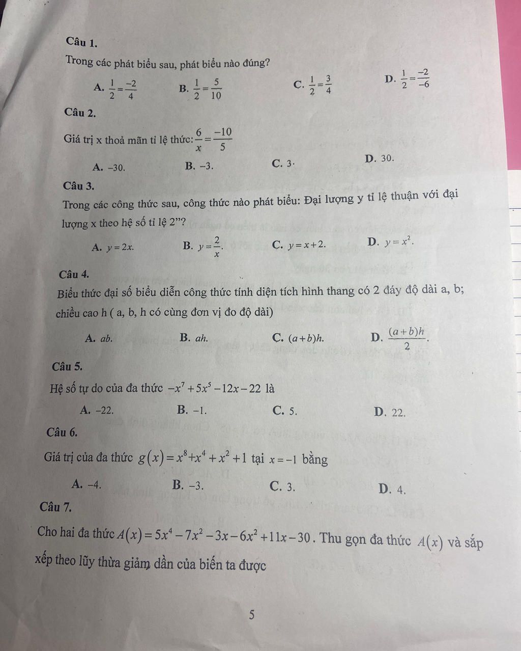 Biểu thức đại số biểu diễn công thức tính diện tích hình thang là: