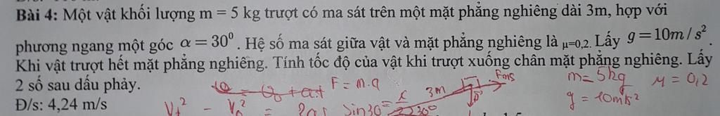 mgl\sin \alpha - {F_{ms}}.l = \dfrac{1}{2}m{v^2}\\
