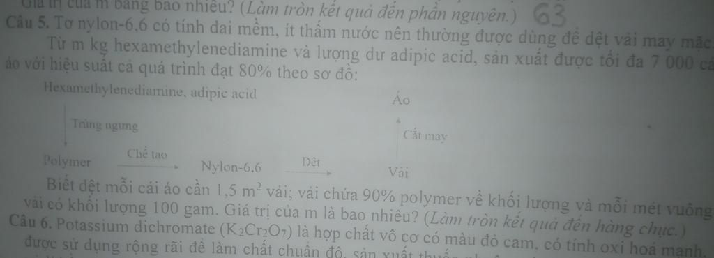 `7000` cái áo `->` `10500m^2` vải `->` `1050000g` vải `->` `945000g` polymer