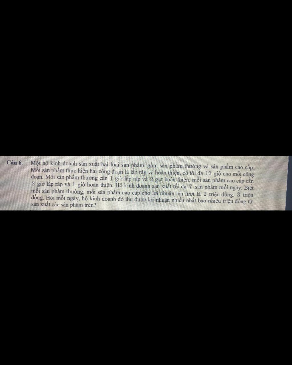 Gọi số sản phẩm thường, cao cấp sản xuất được mỗi ngày lần lượt là $x,y, (x,y\in N)$