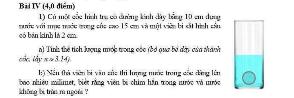 Nếu thả viên bi vào cốc thì lượng nước trong cốc dâng lên :