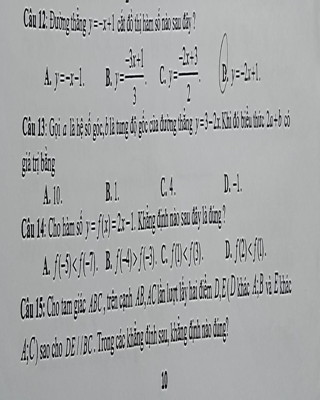 câu 12 : 2 đường thẳng cắt nhau khi hệ số góc khác nhau