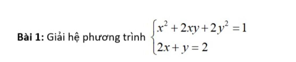 `{(x^2 + 2xy + 2y^2 = 1),(2x + y = 2):}`