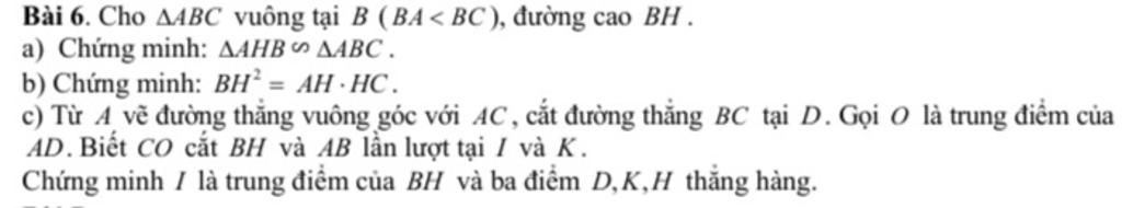 AD. Biết CO cắt BH và AB lần lượt tại I và K.