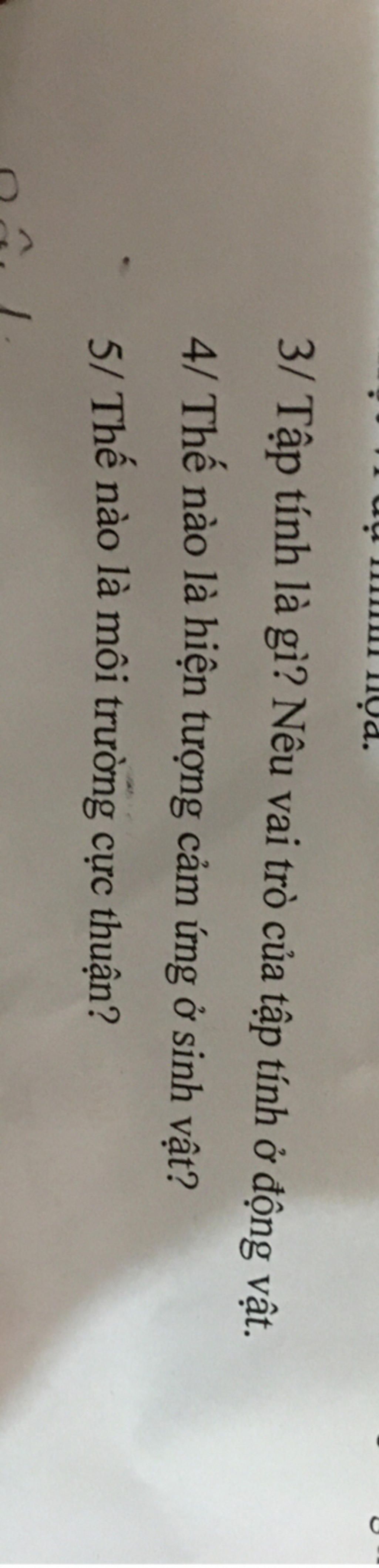3. Tập tính là chuỗi cảm ứng của cơ thể để trả lời lại kích thích từ môi trường
