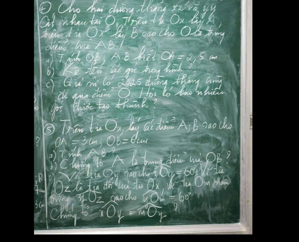 Vẽ tia Oz là tia đối của Ox, tia Om nằm trong góc yOz sao cho yOm^=60∘
