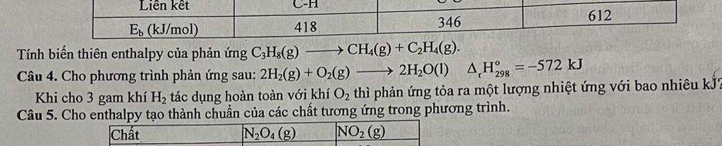 Câu 4. Cho phương trình phản ứng sau: 2H2(g) + O2(g) →2H₂O(1) AH298=-572 kJ