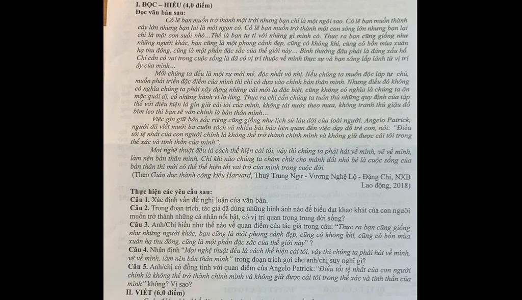 Câu 4. Nhận định: “Mọi người hiểu lẽ ra cách thể hiện cái tôi, vậy thì chúng ta phải hát về mình, vẽ về mình, làm nên bản thân mình.” Trong đoạn trích, ý kiến này gợi cho anh/chị suy nghĩ gì?