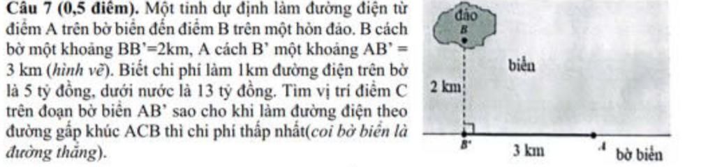 là 5 tỷ đồng, dưới nước là 13 tỷ đồng. Tìm vị trí điểm C 2 km