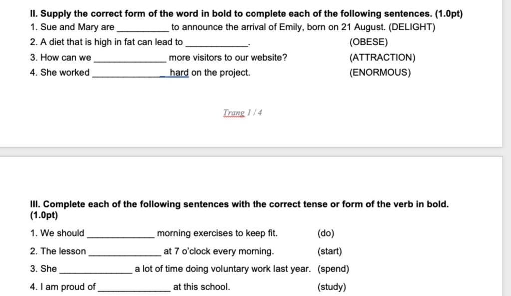 `=>` Cấu trúc THTĐ : S + tobe + Adj/N.