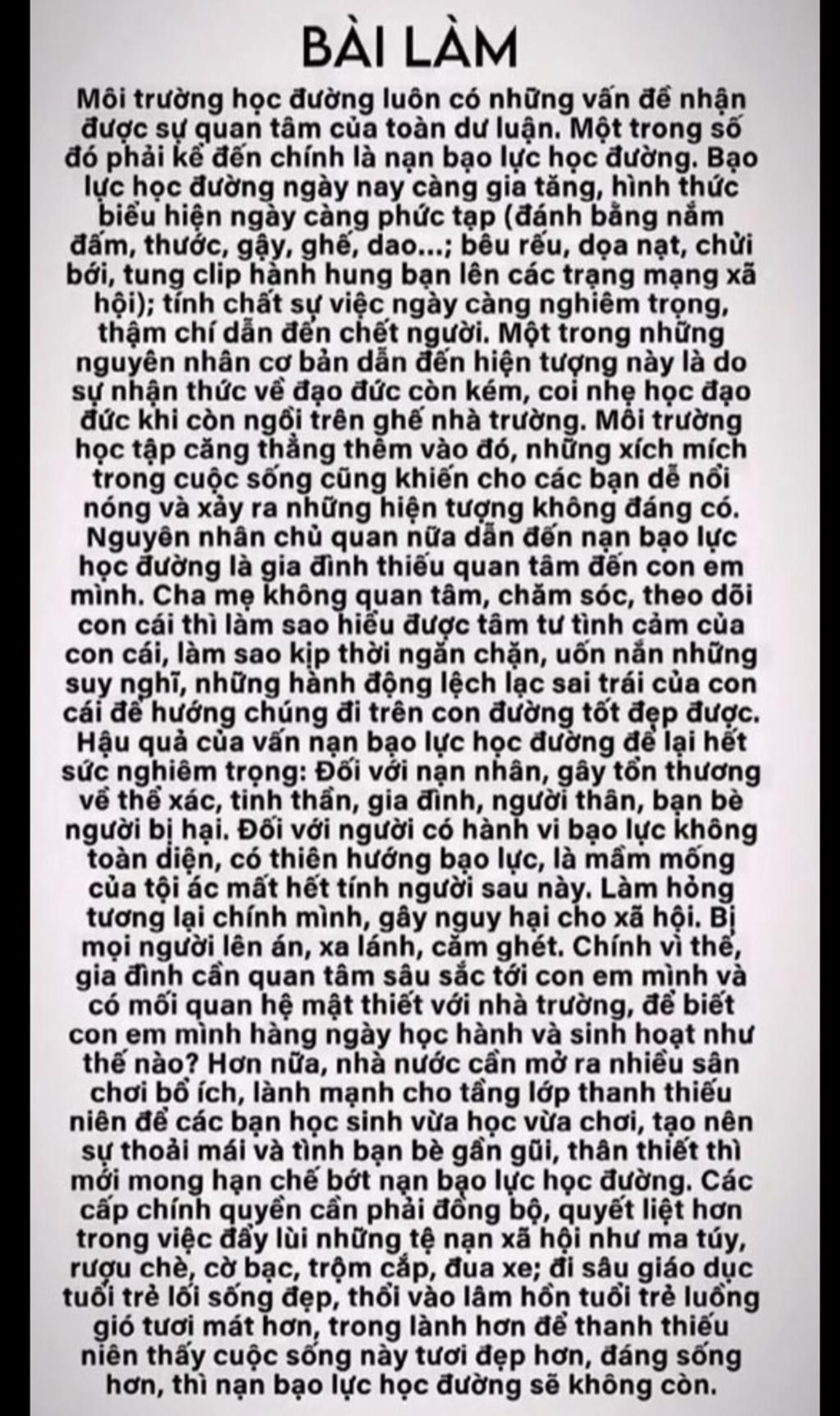 đó phải kể đến chính là nạn bạo lực học đường. Bạo