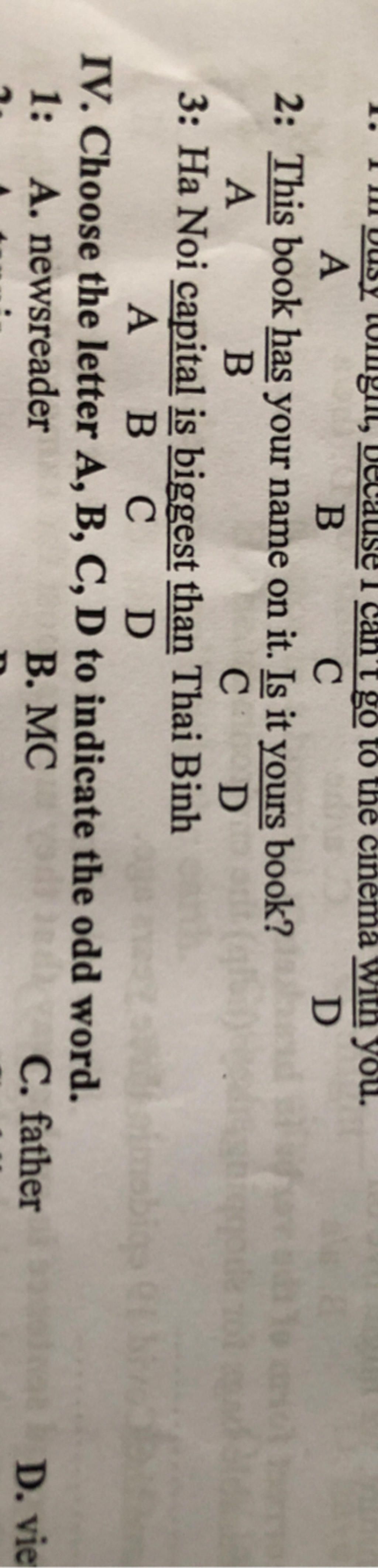 2. D (your)