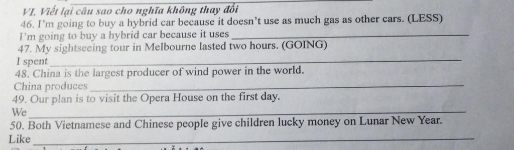 `46.` I'm going to buy a hybrid car because it uses less gas than other cars.