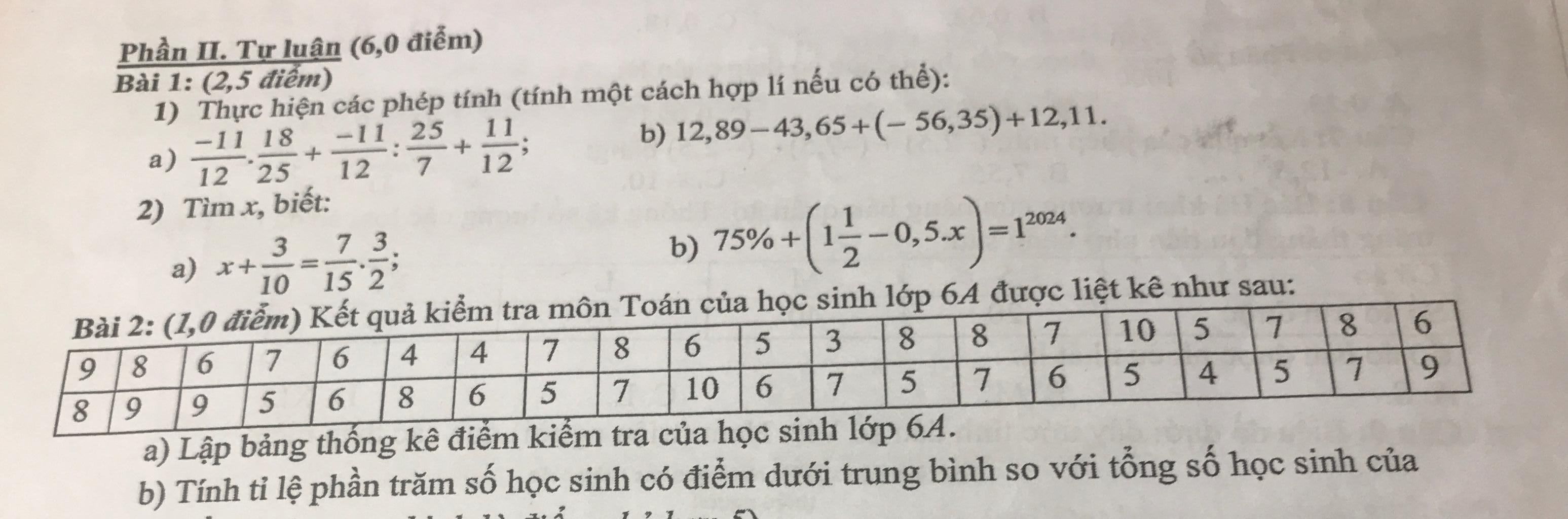 Tỉ lệ % số học sinh có điểm dưới trung bình so với số học sinh lớp 6A là: