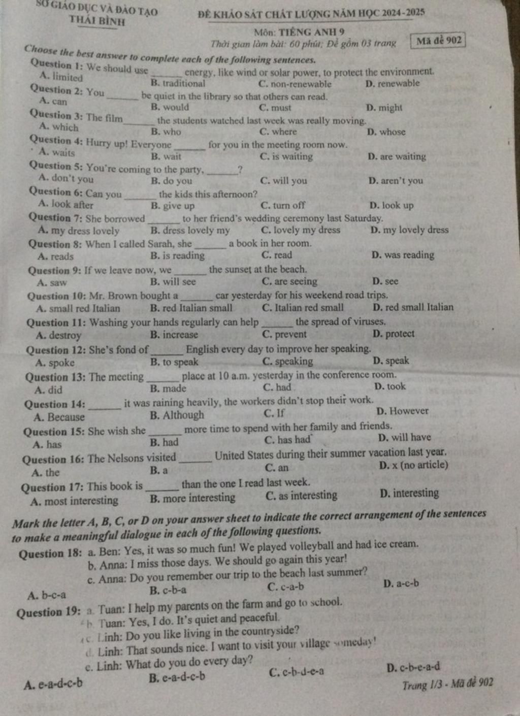 Môn: TIẾNG ANH 9