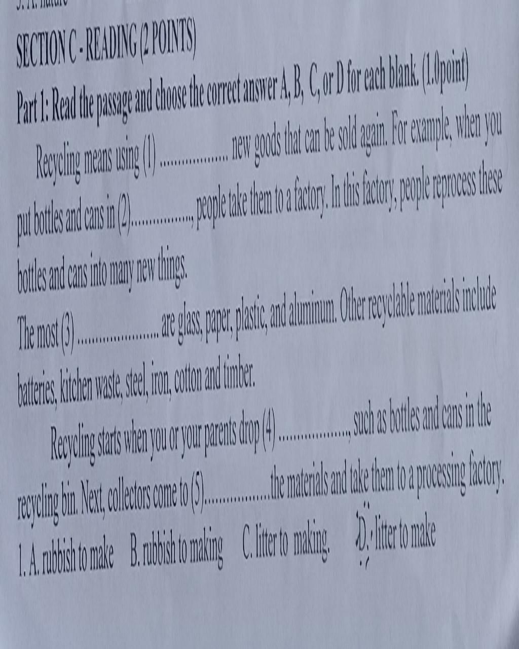 `->` Đoạn văn nói về tính chất tái chế, dùng tính từ: recyclable (a) có thể tái chế