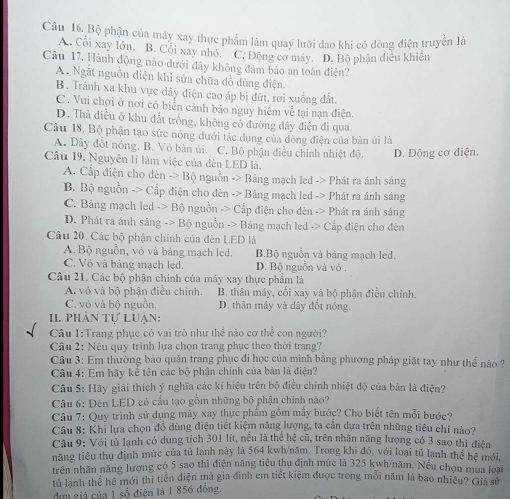 Câu1: Trang phục có vai trò che chở bảo vệ cơ thể con người khỏi 1 số tác động có hại của môi trường và thời tiết