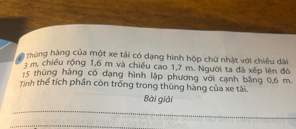 Thể tích của thùng xe tảcó dạng HHCN là: