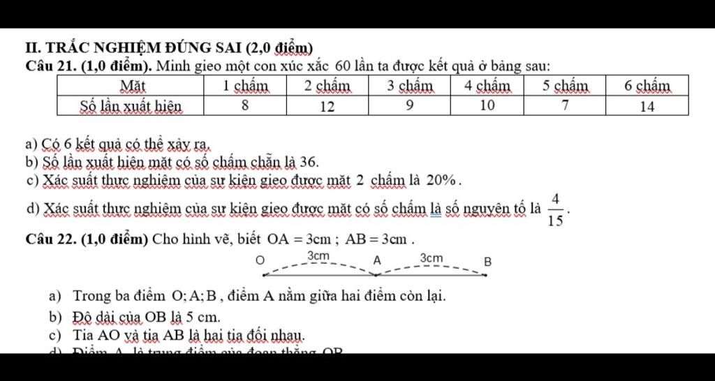 a,Đúng vì có 6 kết quả có thể xảy ra là chấm 1, chấm 2 ,chấm 3, chấm 4, chấm 5 ,chấm 6