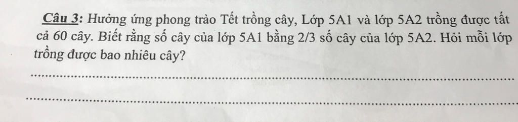 Số cây lớp `5A1` trồng được là :