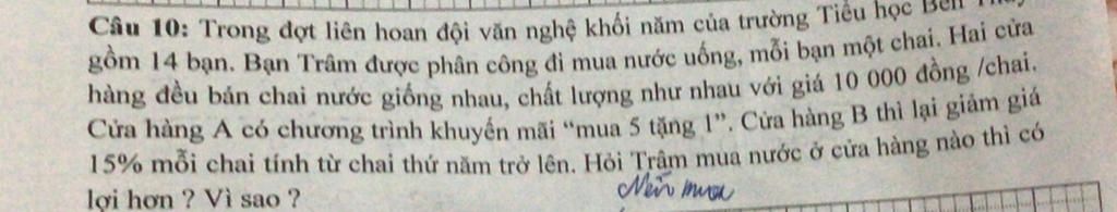 Vì 16>15 nên Trâm nên mua ở cửa hàng thứ nhất