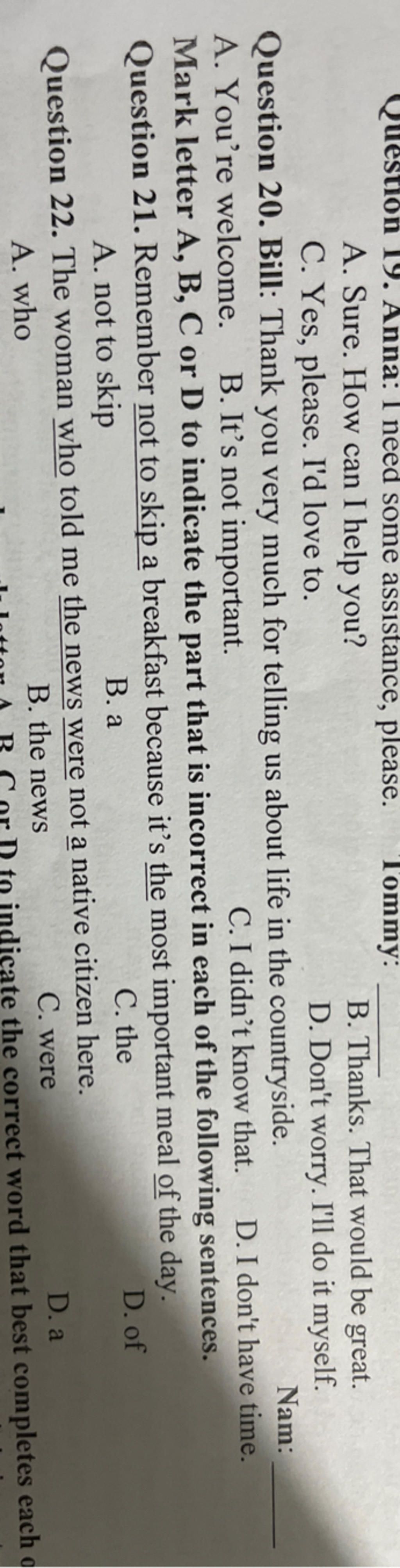 - Tôi cần sự hỗ trợ, làm ơn - Chắc chắn rồi, tôi có thể giúp gì cho bạn? (phù hợp đoạn hội thoại)