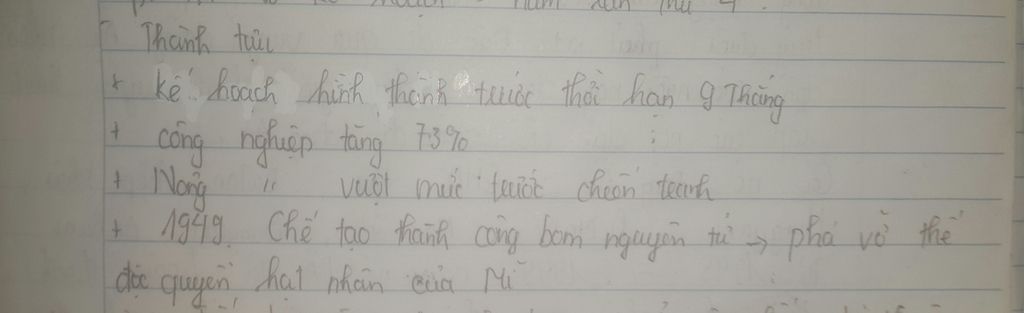+ Năm 1949, chế tạo thành công bom nguyên tử. Phá thế độc quyền vũ khí nguyên tử của Mĩ.