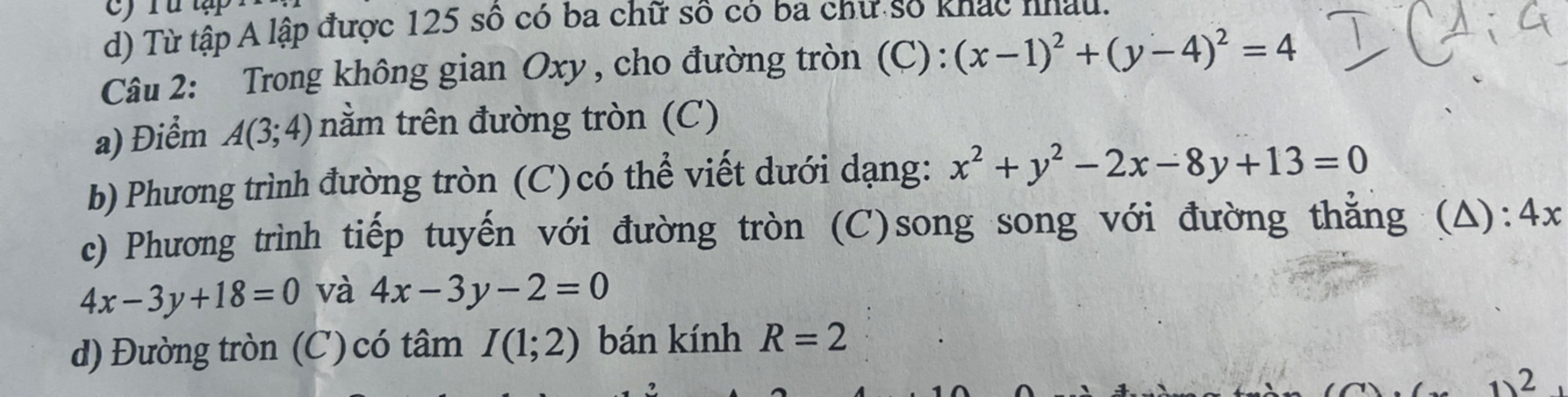 d.Ta có: $(C):(x-1)^2+(y-4)^2=4$