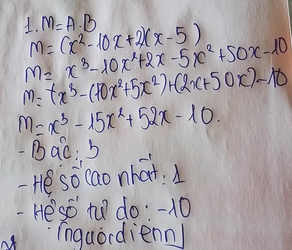 Vậy `M = x^3 + (-15x^2) - 50 + 2x + (-10)`