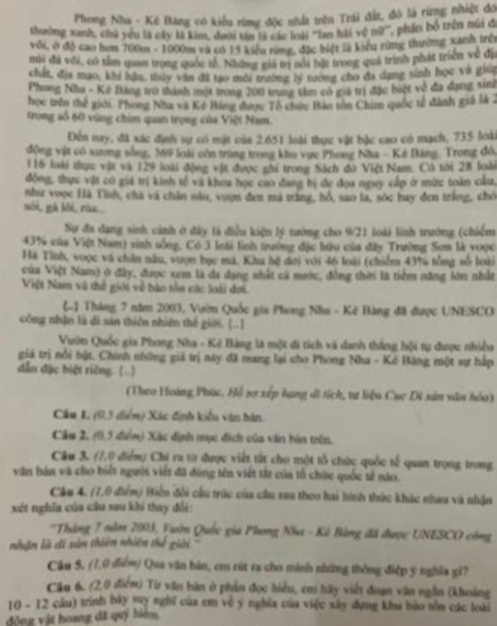 {..} Phong Nha - Kẻ Bàng chứa đựng tính đa dạng của các hệ sinh thái tự nhiên, bao gồm rừng trên núi đá vôi, rừng trên núi đất và vùng chuyển tiếp, sông suối, hang động và các hệ sinh thái thứ sinh.