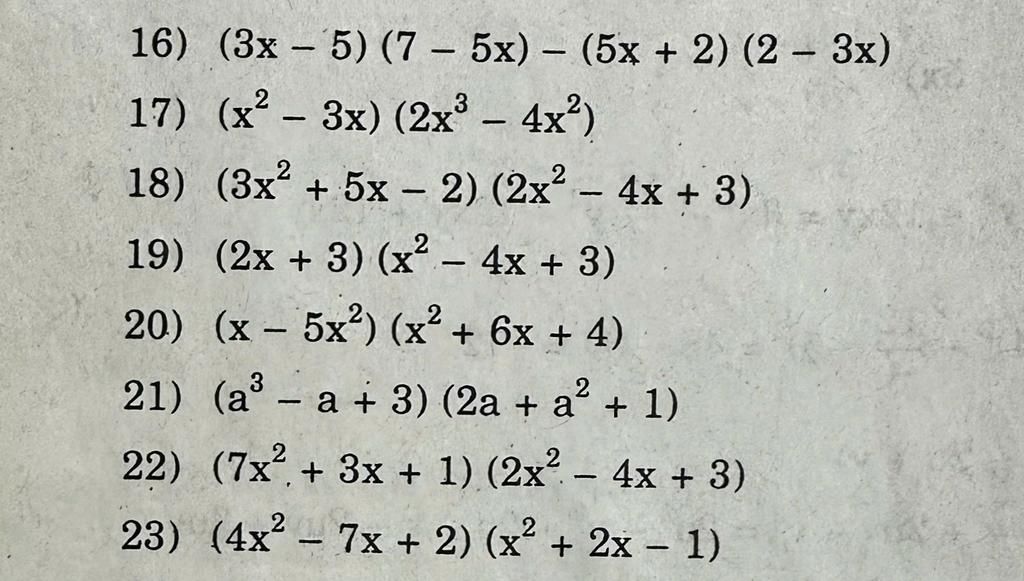 23. (4x² - 7x + 2)(x² + 2x - 1)