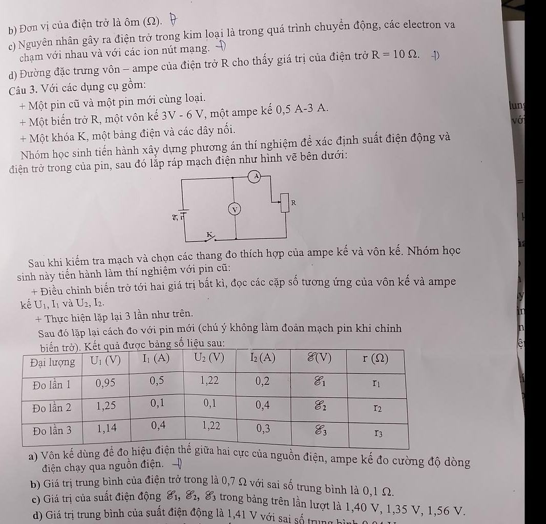 c) Nguyên nhân gây ra điện trở trong kim loại là trong quá trình chuyển động, các electron va