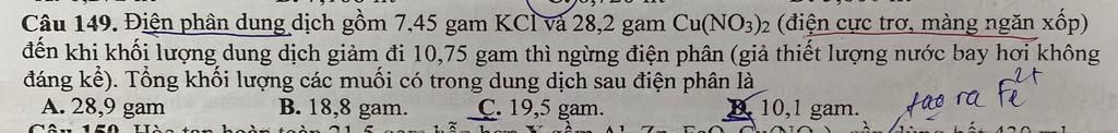 Điện phân dd chứa 7,45g KCl và 28,2g Cu(NO₃)₂