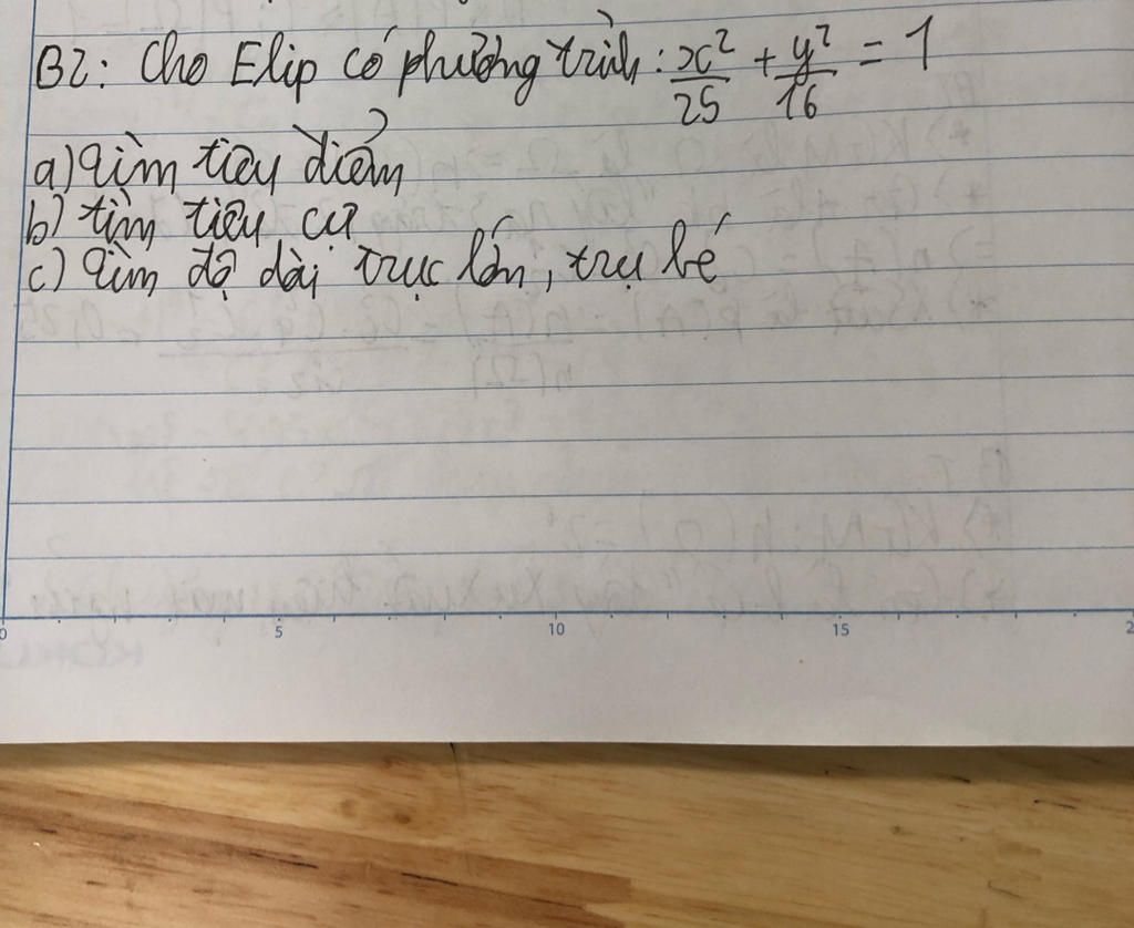 c) trục lớn = 2a mà a=5 nên 2a = 10